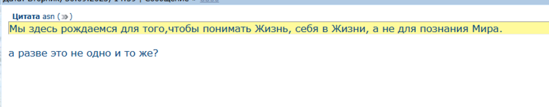 Цитата asn () Мы здесь рождаемся для того,чтобы понимать Жизнь, себя в Жизни, а не для познания Мира.